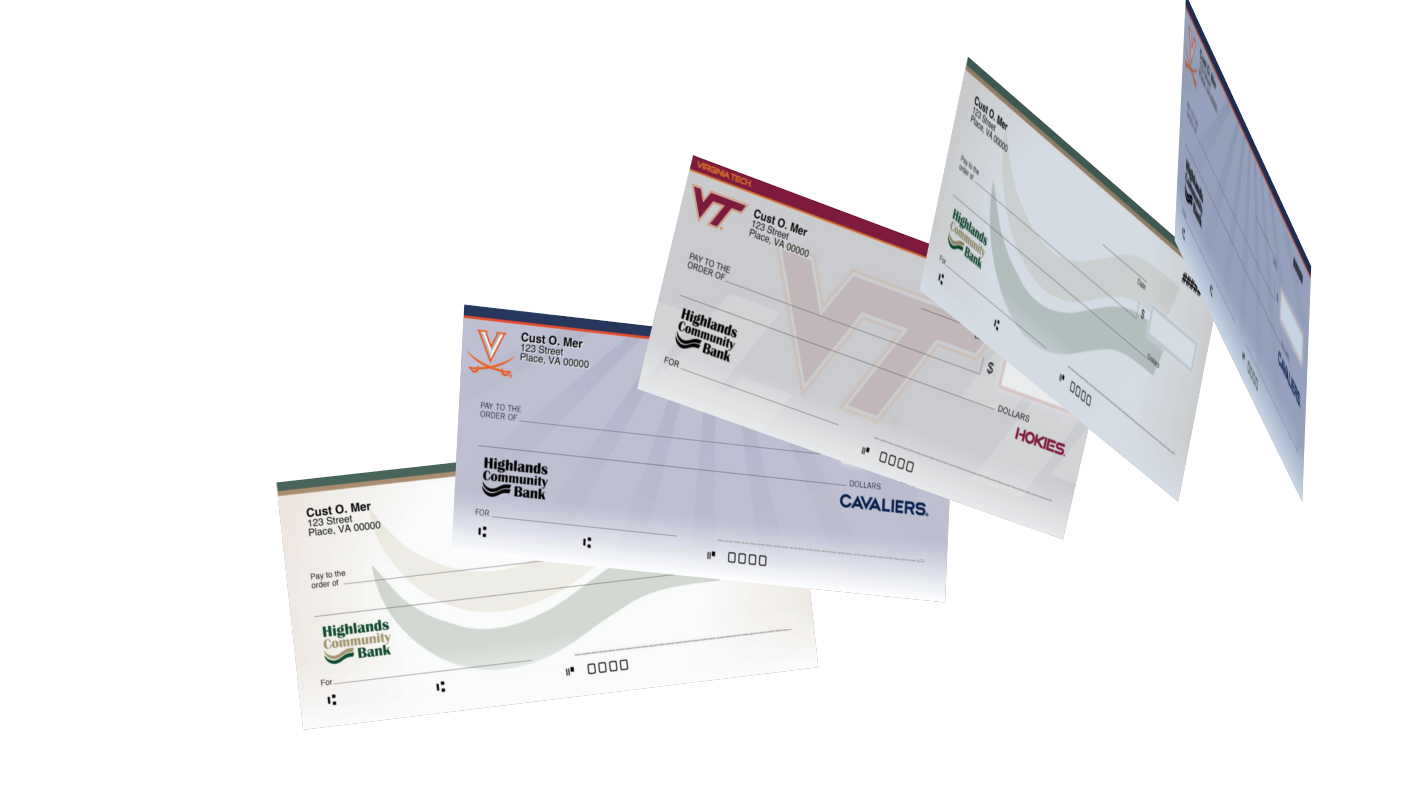 Select from our new check designs—including UVA and Virginia Tech collegiate checks—at no additional cost! Call us to place your first order, or to update your chosen design.